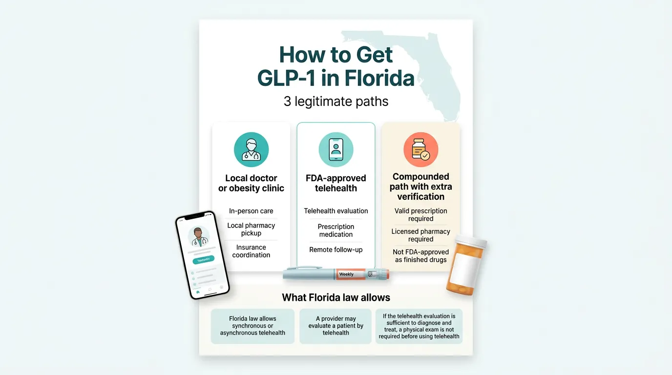 The practical takeaway: for most Florida residents, the entire GLP-1 process happens online. You don't need to drive anywhere, sit in a waiting room, or take time off work.