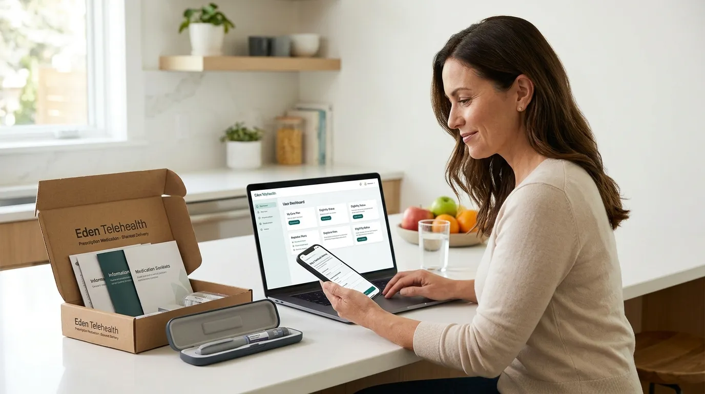 Eden delivers medications to your door after a licensed provider reviews your intake — no in-person visit required.