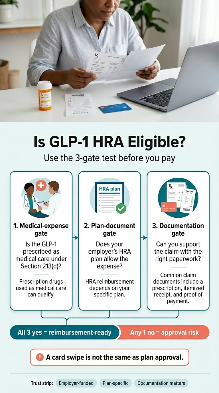 Is GLP-1 HRA Eligible? The 3-Gate Answer Before You Swipe