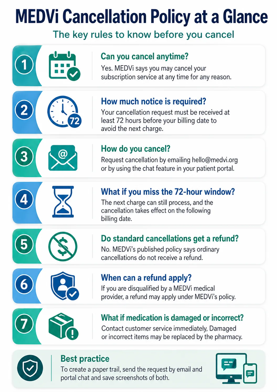 MEDVi Cancellation Policy: How to Cancel, Refund Rules, and the 72-Hour Rule