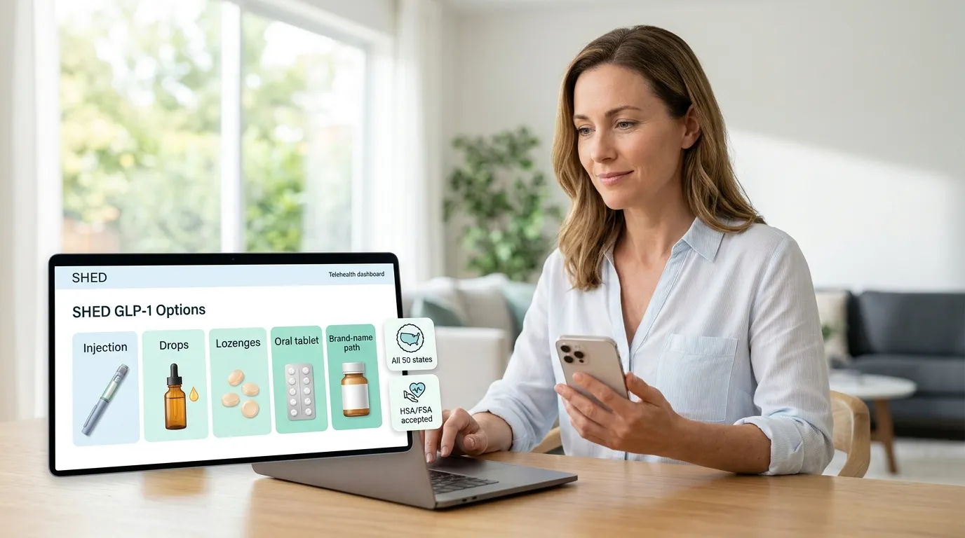 ✓ Start your SHED intake ($100 off your first month) →Still not sure which GLP-1 program is right for you? Take our free 60-second matching quiz — answer five questions, get your personalized action plan.