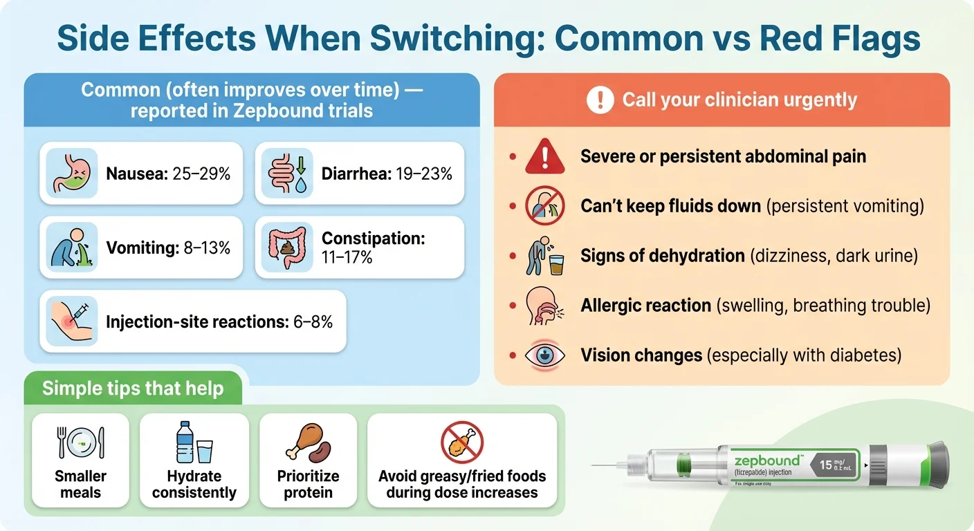 Look at that last row again. Fewer people quit tirzepatide due to side effects than quit semaglutide. That surprises almost everyone — and it's one of the strongest data points in favor of switching.
