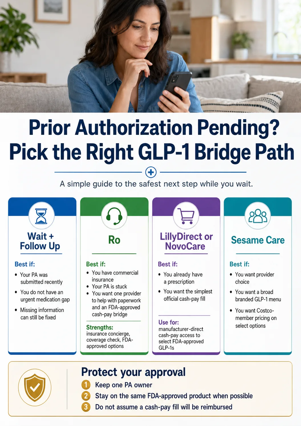 If you are searching for a temporary GLP-1 provider while prior authorization is pending, the safest move for most commercially insured readers is to keep your insurance PA moving and add an FDA-approved cash-pay bridge only if the wait will cost you real progress or you are about to run out.